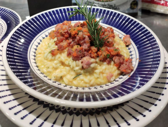 - Sirva o risoto e finalize com a linguiça toscana por cima.
