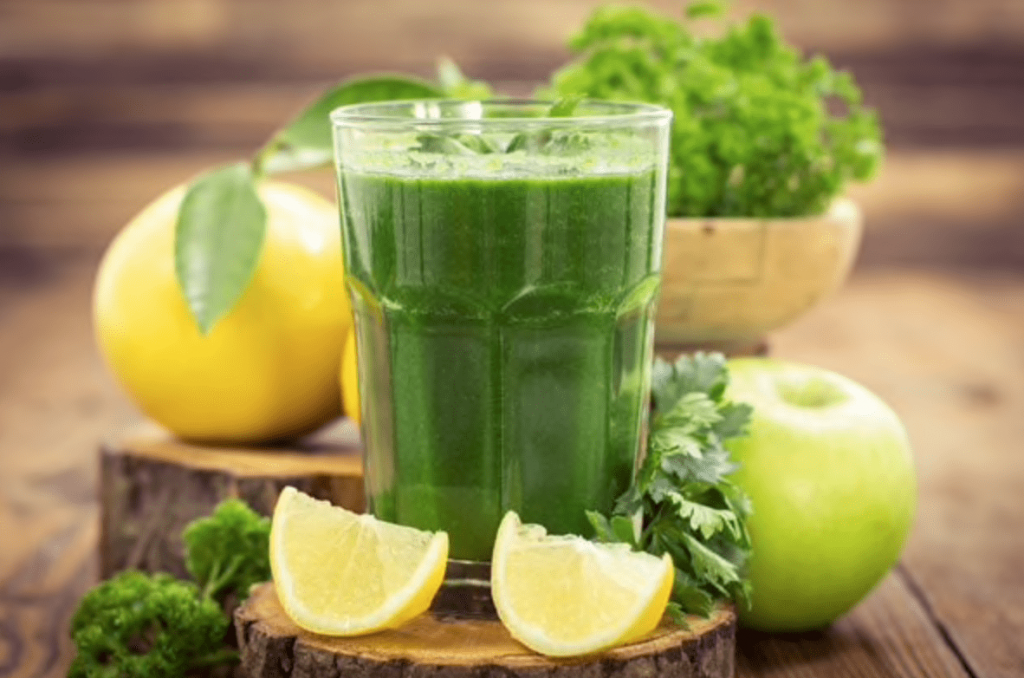 3) Coloque no liquidificador junto com as folhas de couve bem lavadas e com talo.
