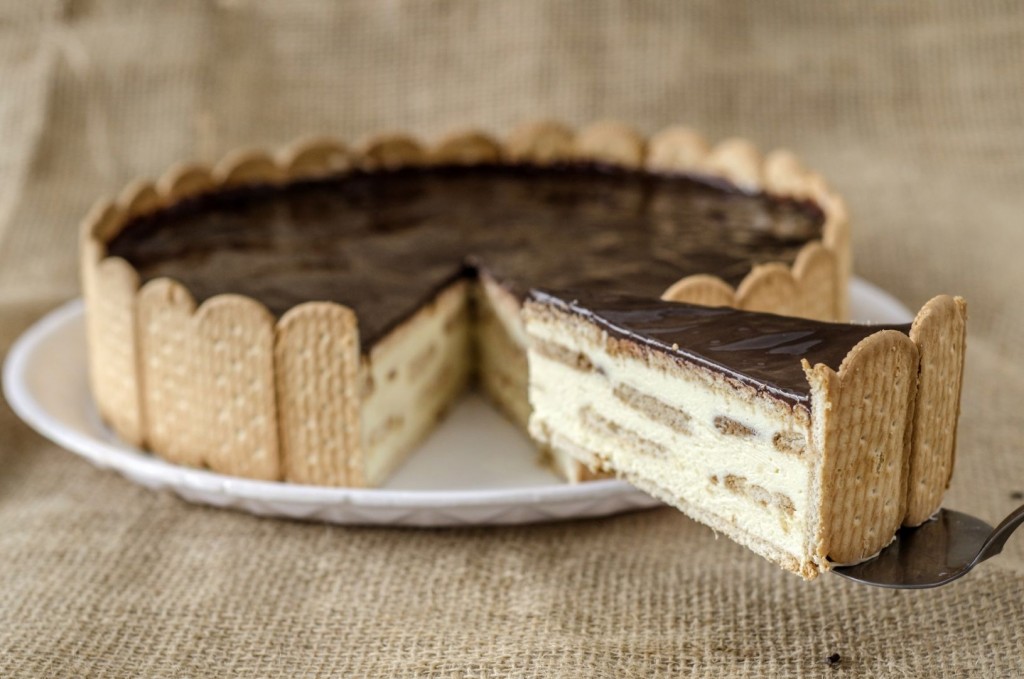 Acrescente uma camada do creme reservado sobre as bolachas.
